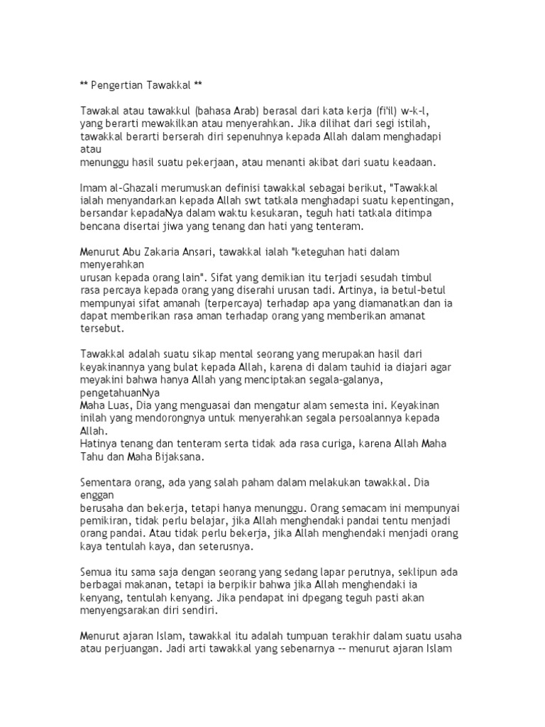 Arti Dari Tawakal Adalah : Tugas Agama Takdir Docx Pengertian Takdir Ikhtiar Doa Dan Tawakal 1 Pengertian Takdir Dalam Islam U2013 Takdir Adalah Ketetapan Dari Allah Swt Sejak Course Hero / Tawakal adalah satu dari sendi iman kepada allah, fondasi ibadah kepada allah, maka tidak heran jika memiliki banyak keutamaan.