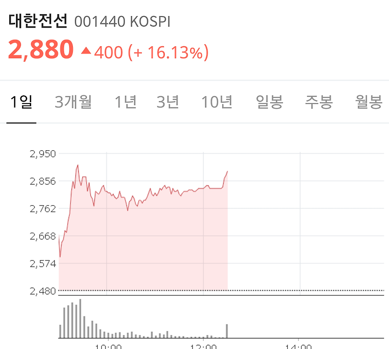 코인 부럽지 않은 대한전선, 5거래일간 주가 55% ↑. 향후 대응 전략 및 주가 전망은? 31일 한국거래소에 따르면 이날 대한전. 대한전선 주가가 상승세를 보이고 있다. 종목명 대한전선 현재 패턴으로는 역헤숄(완성) 상방삼각(진행중) 보고있습니다.